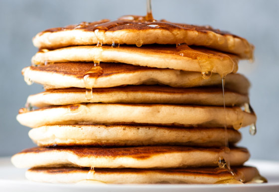 7. قدموا البان كيك ساخناً مع شرائح الكيوي وشراب القيقب.