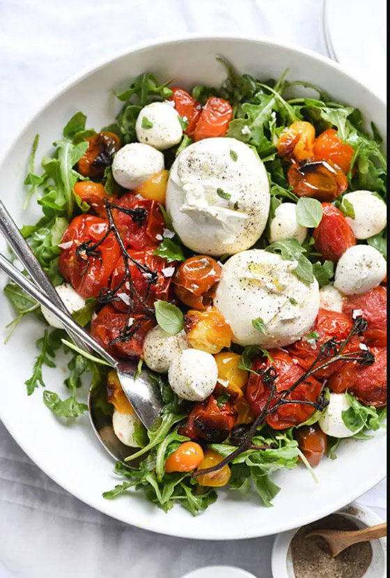 سلطة الطماطم والبوراتا كابريس المشويّة