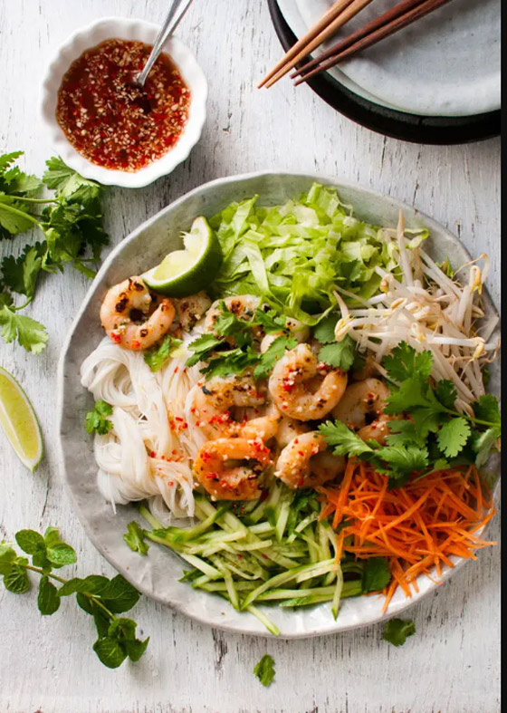 سلطة المعكرونة بالثوم والروبيان