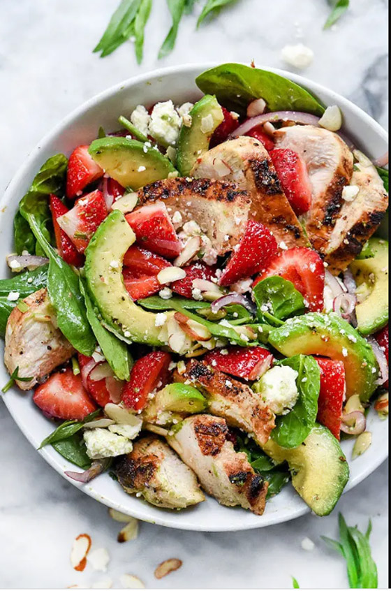 سلطة الفراولة والأفوكادو والدجاج والسبانغ