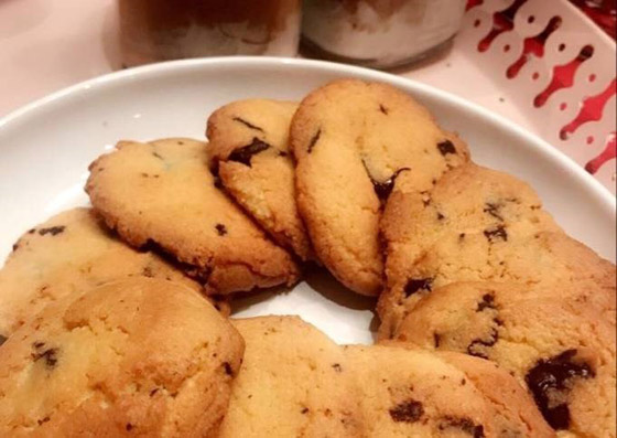 - نضع الكوكيز بالفرن على حرارة 180 درجة مئوية، لمدة 10 دقائق تقريباً، حتى تصبح ذهبية، ثم تقدم.