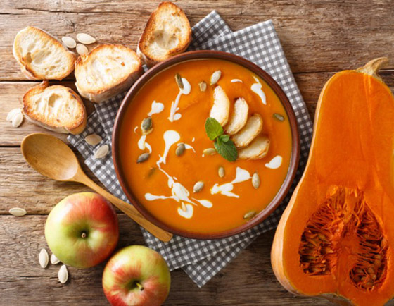 شوربة القرع بالتفاح لمرضى سرطان الثدي.. في شهر التوعية بسرطان الثدي، تعرفوا مع مطبخ شايف على طريقة عمل وصفة من المقبلات الساخنة الطيبة والمفيدة لمرضى سرطان الثدي، جربوا وصفتنا وبالصحة والعافية. وقت الطهي: 40 دقيقة.. يكفي ل: 4 أشخاص.