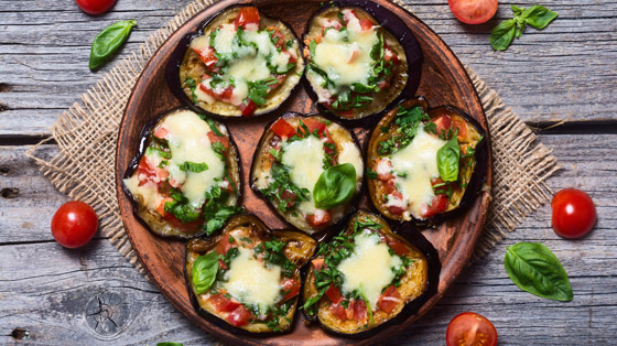 يقطع الباذنجان شرائح متوسطة السماكة.