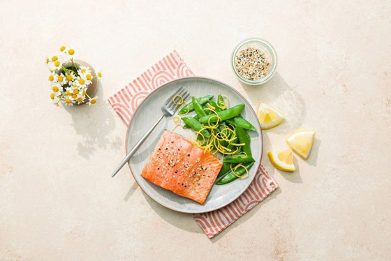 بالنسبة لشيء سريع وطازج، فإن الليمون فوق شرائح السلمون المتبل هو الأفضل، وإذا كنتِ تريدين شيئاً مالحاً بشكل خاص مع الخضار، يمكنكِ تتبيل السلمون بصلصة الصويا الممزوجة بقليل من السكر.