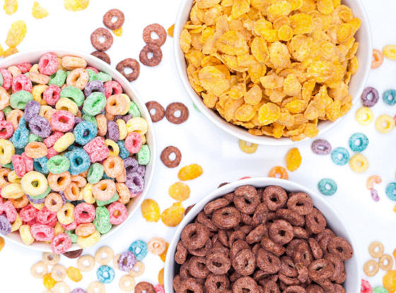 • يجب تجنب حبوب الإفطار التي تحتوي على نسبة كبيرة من السكر، كتلك الملونة التي تباع للأطفال بشكل خاص.