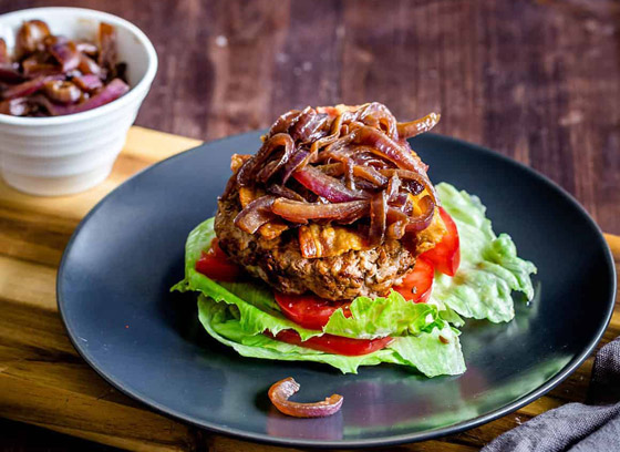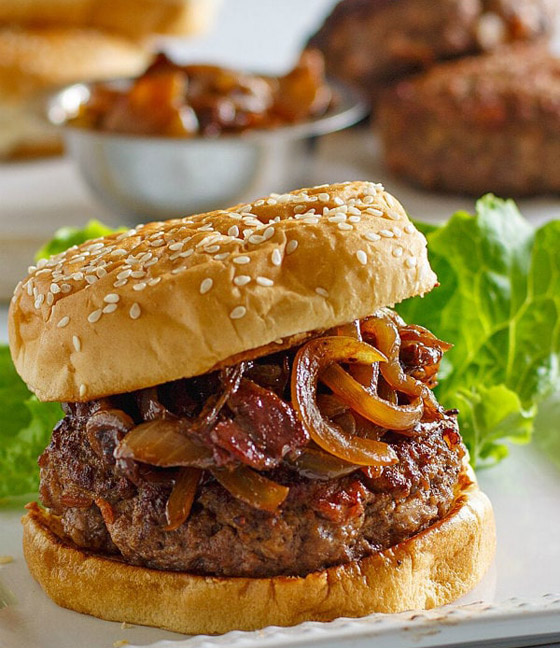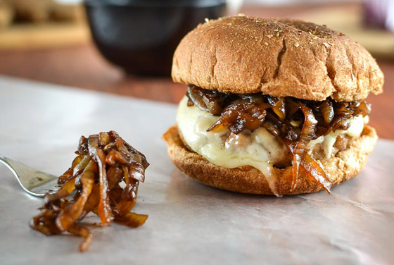 3. استخدموا البصل المكرمل لعمل البرغر.