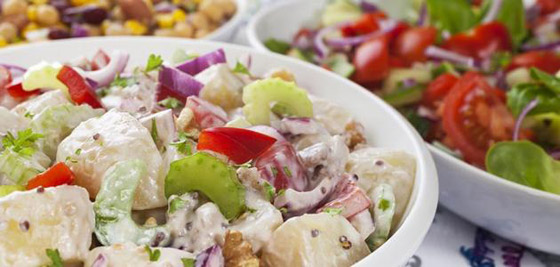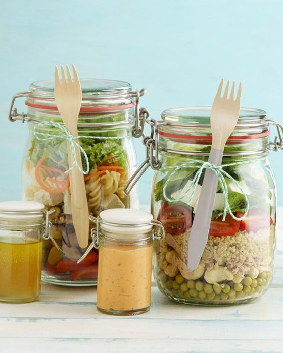 تحتوي أفضل السلطات على مزيج من الخضروات الرقيقة والهشة، وبعض الإضافات الأخرى، مثل: قطع الجبن والخبز والبيض المسلوق، وغيرها، وللحفاظ على تلك الخضروات الرقيقة من الذبول والكدمات، قومي بتعبئة سلطتك رأساً على عقب، أي ضعي الأشياء الثقيلة في الجزء السفلي من علبة الغداء الخاصة بك، ثم ضعي الخضار في الأعلى. وتأكدي منإبقاء العلبة مستوية أثناء النقل، ثم عندما يحين وقت الغداء، قومي بتفريغ المحتويات في وعاء كبير، وتقليبها وتناولها.