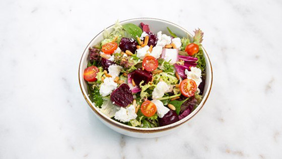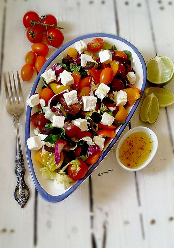 ينسق الصحن بطريقة جمالية، ونضيف مكعبات الجبنة.