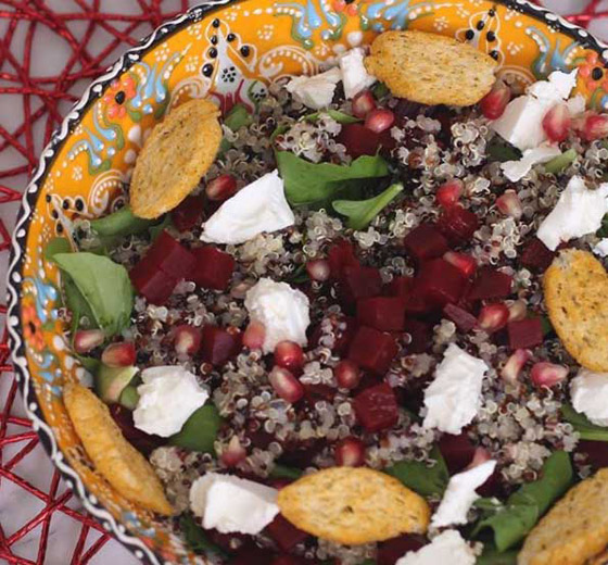 تعتبر الكينوا من الحبوب الغنية بالكثير من أنواع الفيتامينات والمعادن، مثل: الحديد، الماغنيسيوم، الكالسيوم، البوتاسيوم، والزنك، فضلاً عن فيتامين "إي"، و"بي"، كما توجد بها أنواع خالية من الغلوتين لذا تعد طعاماً مناسباً للمرضى الذين لديهم حساسية ضد الغلوتين، ومن يتبعون حمية صحية، نظراً لمذاقها اللذيذ عدا غناها بالألياف، التي تمنح الشعور بالشبع، إليك طريقة تحضير سلطة الكينوا بطريقة سهلة وشهية.