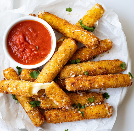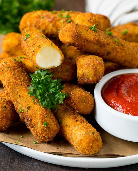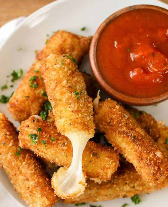 6. ضعوا أصابع الموزاريلا في طبق التقديم وقدموها ساخنة.