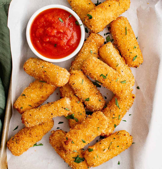 أصابع الموزريلا المشوية... قدموا وصفة ساحرة ورائعة وستنال إعجاب عائلتكم بكل تأكيد، قدموا أصابع جبن الموزاريلا اللذيذة والمقرمشة والمحمرة في الفرن، وتُقدم كطبق مقبلات ساخن بجانب أنواع عديدة من وصفات الصوصات مثل الكاتشاب والمايونيز وغيرها. وقت الطهي: 20 دقيقة.. يكفي ل: 4 أشخاص.