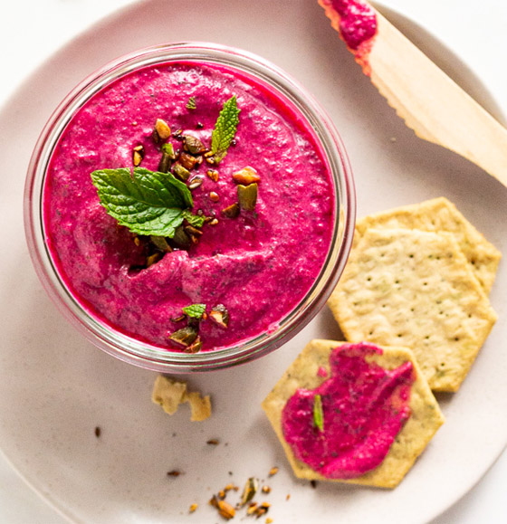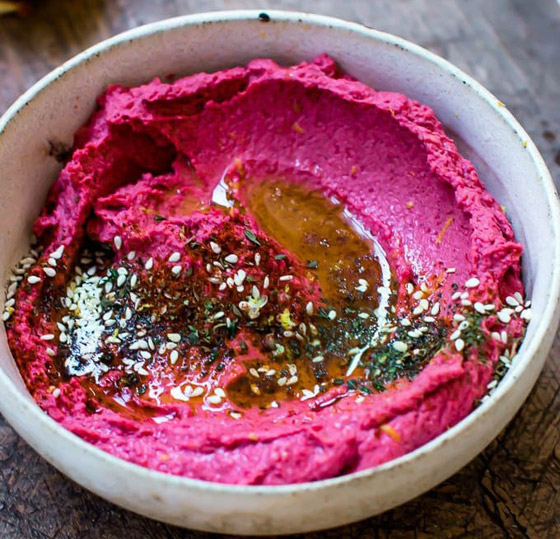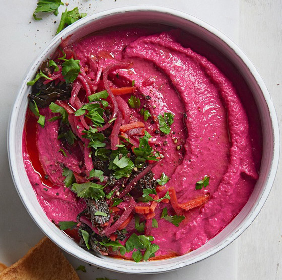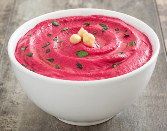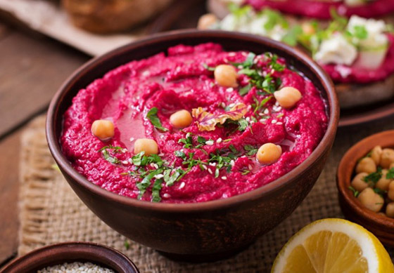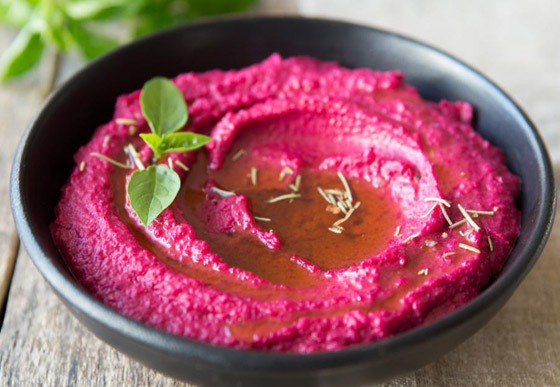 1. ضعوا الشمندر المسلوق بوعاء الخلط، ثم أضيفوا الطحينة مع عصير الليمون، والملح، والثوم.