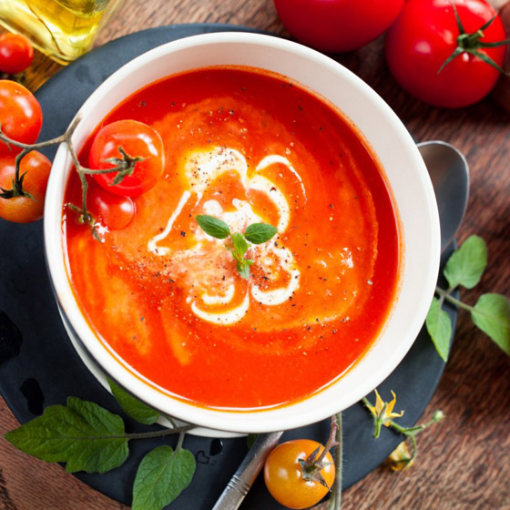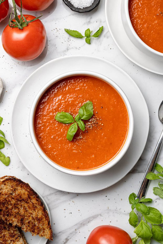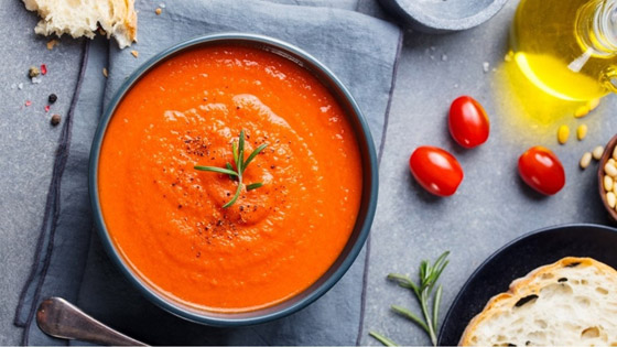 تعد الطماطم أحد المكونات المفضلة عند تحضير حساء الخضار البارد، وهي عنصر متعدد الاستخدامات للغاية وتجمع بين الفاكهة والخضروات وهي الأكثر استهلاكاً في العالم، ونكهتها تمتزج بشكل مثالي مع الخضار والتوابل الأخرى. وهي منخفضة السعرات الحرارية وتوفر العناصر الغذائية الأساسية، لكنها بشكل خاص مصدر لمادة الليكوبين المضادة للأكسدة، والتي تم ربطها بالعديد من الفوائد الصحية، بما في ذلك تقليل مخاطر الإصابة بأمراض القلب والسرطان. إليك هذه الوصفة اللذيذة بسيطة التحضير من الطماطم.