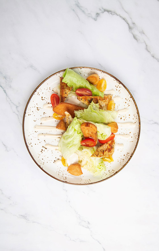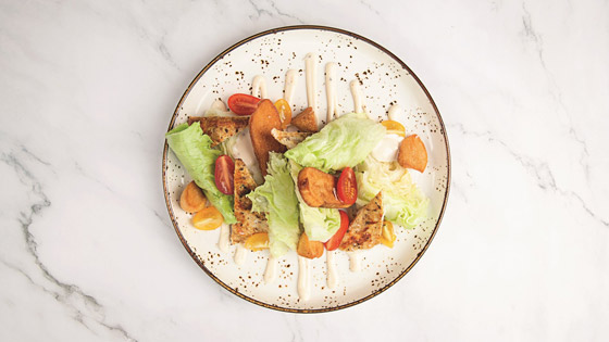 - في وعاء عميق، نضع الخس أولاً، ثم نضف الأعشاب المجففة.