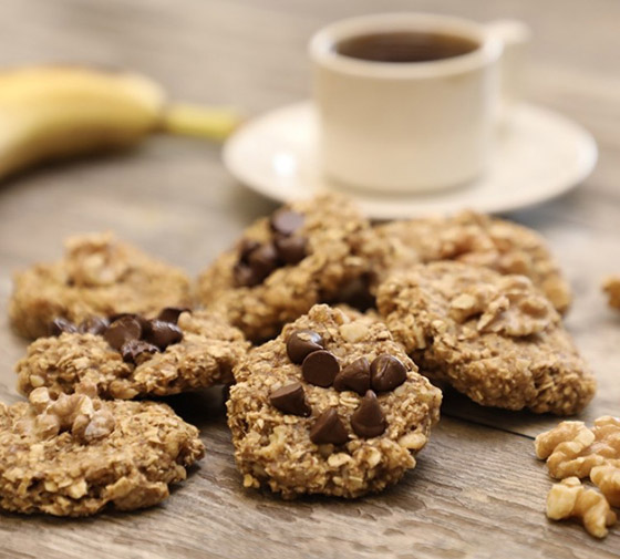 كوكيز الموز بالجوز الصحي... إليكم وصفات الحلويات الصحية، وتعلموا بخطوات ولا أسهل منها طريقة عمل وصفات الكوكيز الشهية والبسيطة والقليلة السعرات الحرارية، حلى طيب وخفيف جربوه الآن. وقت الطهي: 30 دقيقة.. يكفي ل: 4 أشخاص.