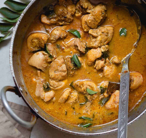 4. ضعوا النودلز المسلوق في طبق التقديم، ووزعوا فوقه شرائح اللحم بالكاري وحليب جوز الهند وقدموه ساخناً.