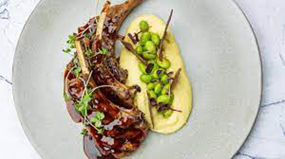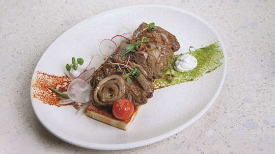 - اسكبي اللحم في صحن التقديم، وزينيه بالطماطم الكرزية والفجل والفستق المجروش.