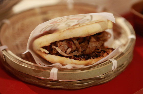 إذ كان يتم تقديم هذا البرجر على شكل وجبة رئيسية في مدينة شيان، وهي التي كانت نقطة بداية طريق الحرير التاريخي، الذي كانت تمر منه العديد من القوافل والسفن حينها. وقد عرفت هذه المدينة ظهور عدد كبير من الوجبات الصينية الشهيرة، والتي ما زالت موجودة حتى عصرنا الحالي، وكان ما يميزها أنها كانت مُشْبِعة وسهلة التناول، كما هو حال الوجبات السريعة حالياً.