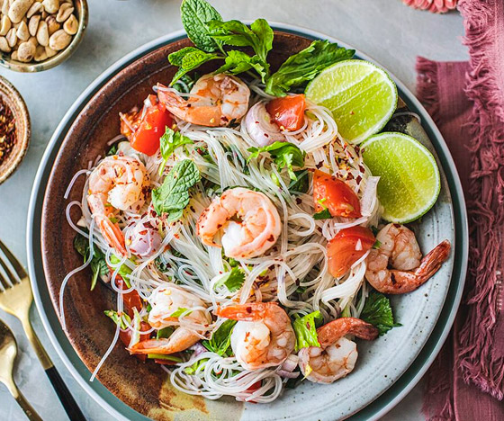 سلطة نودلز بالجمبري... حضروا بطريقة مميزة أشهر وصفات سلطات المطبخ الصيني، جربوا سلطة النودلز بالجمبري اللذيذة، وتمتعوا بمذاق السلطة الساحر والخفيف. وقت الطهي: 30 دقيقة.. يكفي ل: 3 أشخاص.