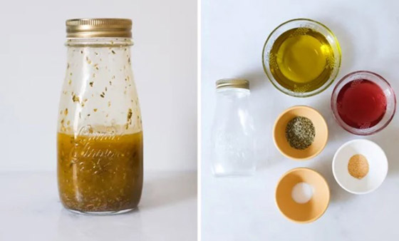 في حين أن صلصة الخل اليونانية هذه يمكن استخدامها مع الخضروات، إلا أنها لذيذة بشكلٍ خاص على سلطة المعكرونة اليونانية. ولتحضيرها، اخلطي جميع المكونات الآتية معاً في زجاجة ورجيها، ويمكنكِ الاحتفاظ بها على الرف لبضعة أسابيع.