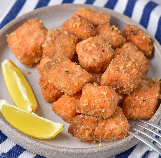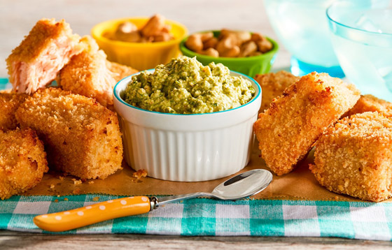 ناجتس السلمون... حضروا وصفات الناجتس لأفراد عائلتكم في المنزل بطعم شهي ومميز بسمك السلمون، جربوا وصفتنا بطعم لا يُقاوم وقدموا بجانبه أطباق الصلصات والسلطات اللذيذة. وقت الطهي: 60 دقيقة.. يكفي ل: 5 أشخاص.