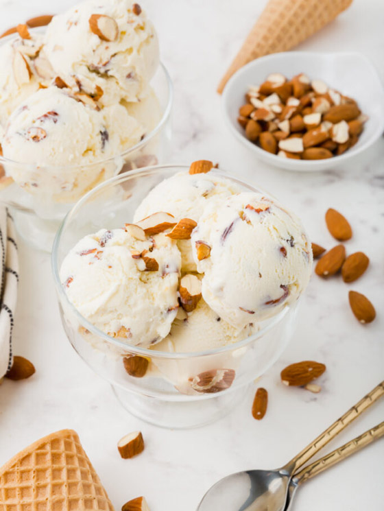 آيس كريم باللوز... في أيام الصيف الحارة، قدموا وصفة من الحلى البارد بمذاق شهي جداً باللوز، جربوا وصفتنا السهلة والبسيطة وقدموا الآيس كريم بأكواب التقديم أو بسكويت الآيس كريم. وقت الطهي: 60 دقيقة.. يكفي ل: 3 أشخاص.