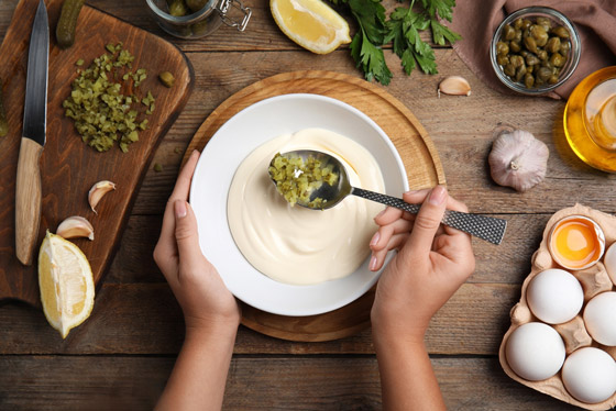 يمكن تناول الصلصة الكلاسيكية مع أطباق مثل السمك، والبطاطس، والشطائر والسندويتشات المختلفة، واللحوم والدجاج. فيما يلي نستعرض بالخطوات وصفة صوص التارتار المنزلي، الذي يمكن الاحتفاظ به لمدة أسبوع بالثلاجة في وعاء محكم الإغلاق.