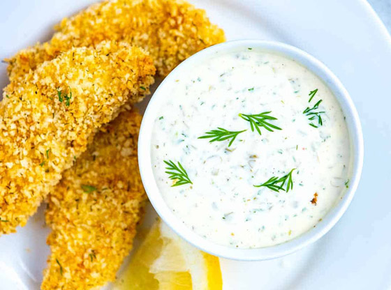 1. في وعاء متوسط وعميق، يتم تحضير صوص التارتار عن طريق خفق المايونيز والمخللات المفرومة والشبت أو البقدونس المفروم جيداً.