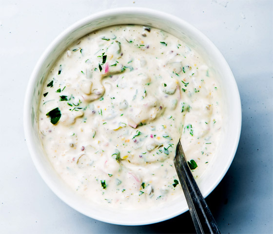 مثلما بالإمكان الاختيار بين الشبت والبقدونس للأعشاب المفرومة الطازجة التي تتم إضافتها لصوص التارتار الكريمي المنعش، بالإمكان أيضاً استبدال السكر بملعقة كبيرة من عسل النحل الطبيعي، أو إضافة ملعقة صغيرة من معجون المستردة الغني لتعزيز المذاق اللاذع في الصوص.