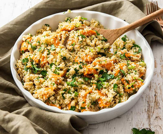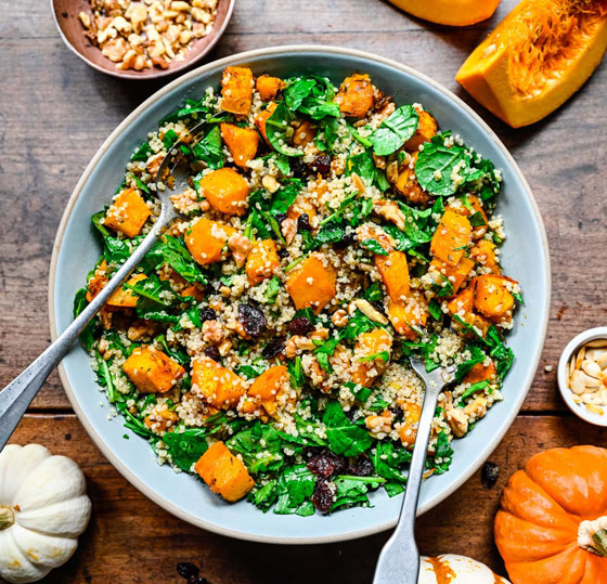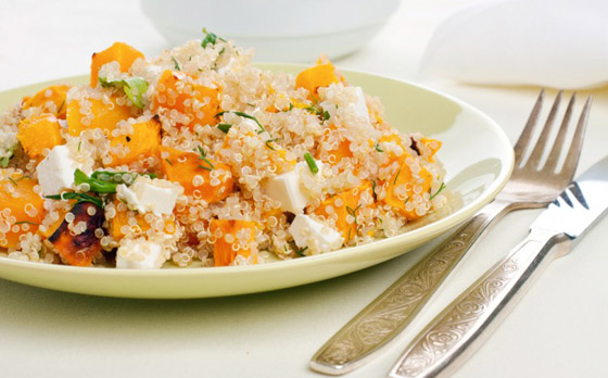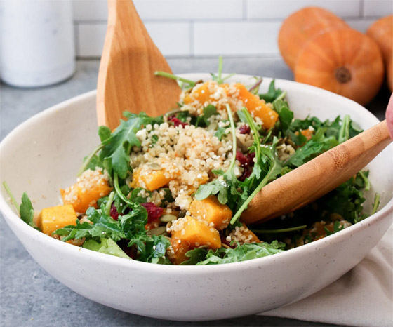 سلطة كينوا بالقرع... تلذذوا بطعم وصفة جديدة من وصفات سلطات الكينوا الشهية والمفيدة، جربوها بالقرع الطيب، وقدموا وصفتكم كطبق جانبي مع الأطباق الرئيسية المنوعة. وقت الطهي: 40 دقيقة.. يكفي ل: 4 أشخاص.