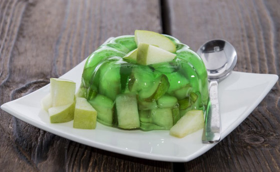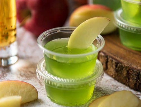 6. اسكبوا الجيلي في أكواب التقديم وضعوها في الثلاجة لحوالي 5 ساعات حتى يجمد جيلي التفاح الأخضر وقدموه بارداً.