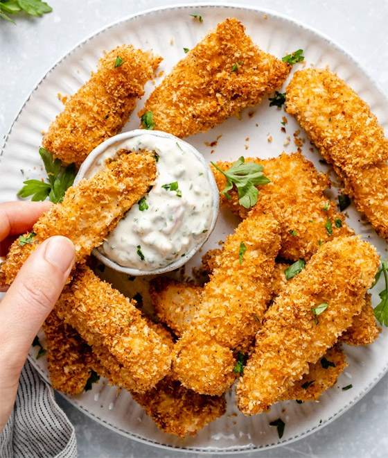 أصابع السمك الفيليه المشوية بالبقسماط... من وصفات السمك اللذيذة والشهية جداً، المتبلة والمغمسة بطبقة مقرمشة بالبقسماط المحمص، تعرفوا على طريقة عمل وصفات فيليه السمك الشهية من مطبخ شايف، وقدموا وصفتكم مع الصلصات المفضلة للعائلة. وقت الطهي: 60 دقيقة.. يكفي ل: 4 أشخاص.