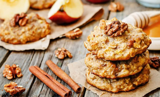 كوكيز التفاح بالجوز والقرفة... إليكم من مطبخ شايف بلس وصفة جديدة من وصفات حلى الكوكيز الطيب بحشوة مكونة من التفاح المبشور، مع القرفة الزكية، والجوز، وصفة حلويات غربية رائعة ولذيذة ومناسبة كضيافة لجميع المناسبات العائلية، جربوها وتمتعوا بطعمها الخفيف. وقت الطهي: 60 دقيقة.. يكفي ل: 6 أشخاص.