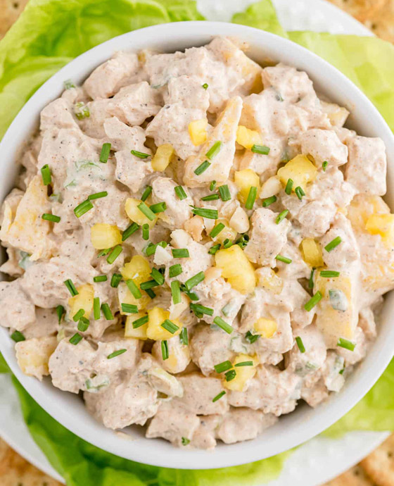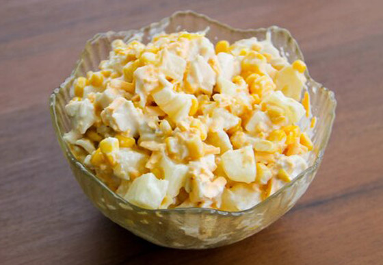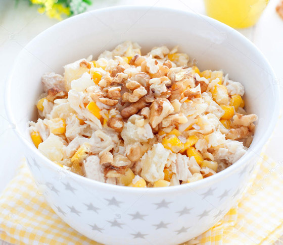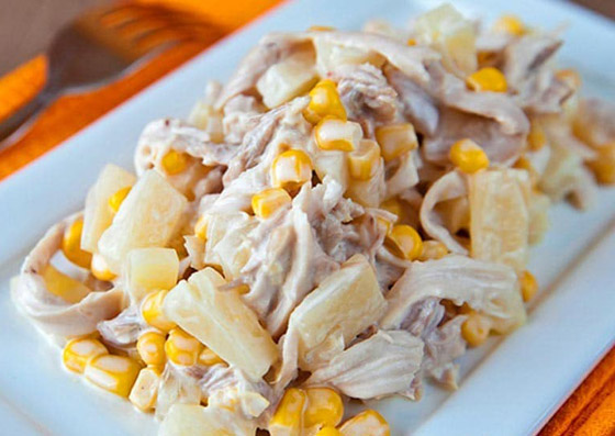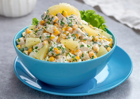 1. اخلطوا الدجاج مع الأناناس والذرة في طبق.