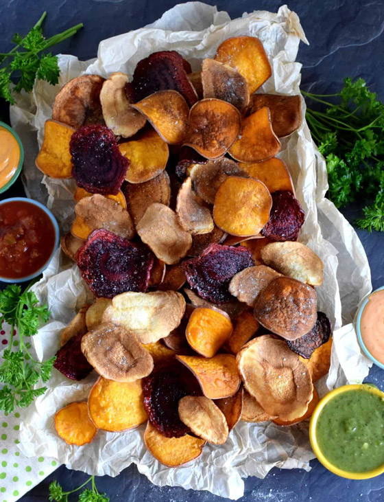 شيبس الخضار الصحي المشوي... الجميع يفضل رقائق الشيبس المقرمشة وخاصة رقائق البطاطس، فهي من الوجبات أو المقبلات التي لا غنى عنها للتسلية والضيافة، إليكم أسهل طريقة لعمل وصفة شيبس الخضار المشوي بطريقة صحية، تعرفوا على الطريقة بالسطور التالية وقدموا بجانبه الصوصات المفضلة. وقت الطهي: 60 دقيقة.. يكفي ل: 4 أشخاص.