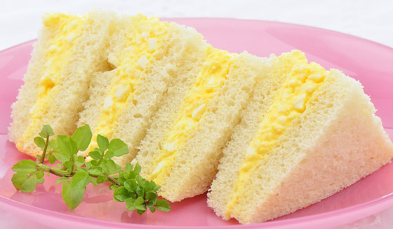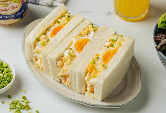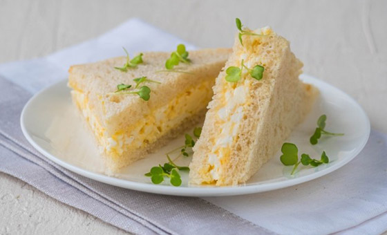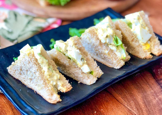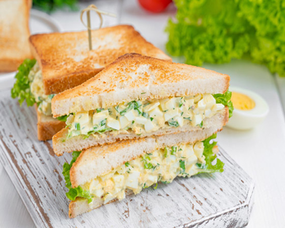 4. وزعوا سلطة البيض فوق الخبز المحمص مع أوراق الخس والخردل والمايونيز.