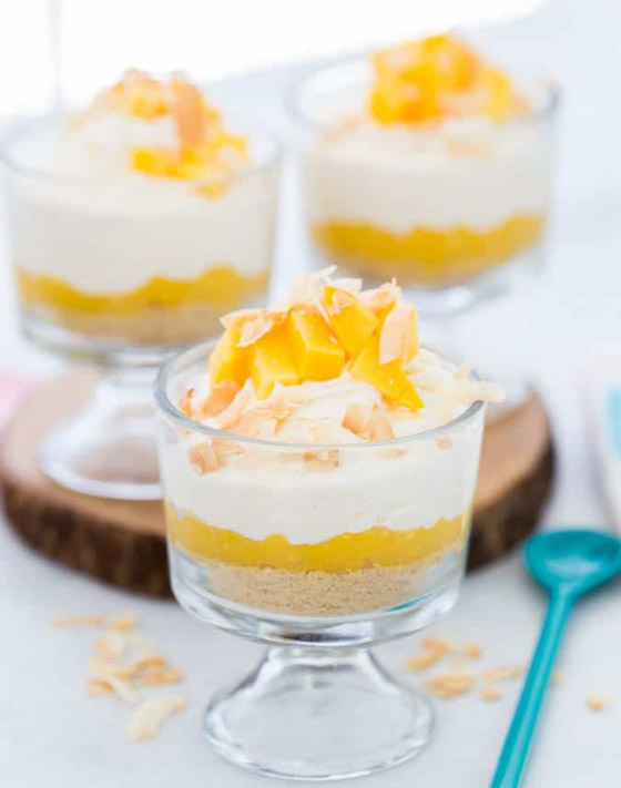 1. قطّعوا الكعك ووزعوا القطع في طبق التقديم أو كاسات بحسب الرغبة واتركوها جانباً.