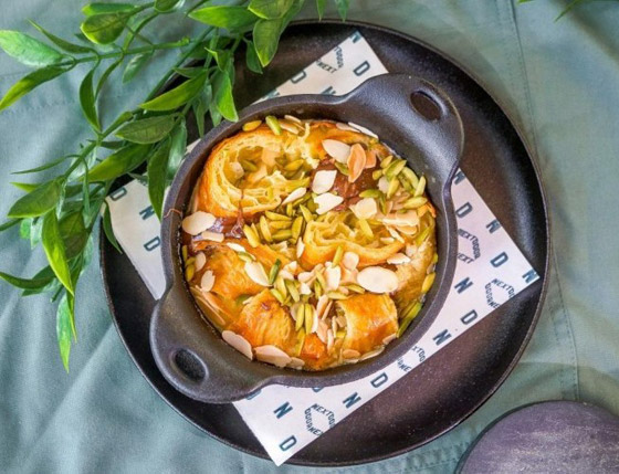 4. أخرجوه من الفرن، وزينوه بالمكسرات، ثم قدموه ساخناً.
