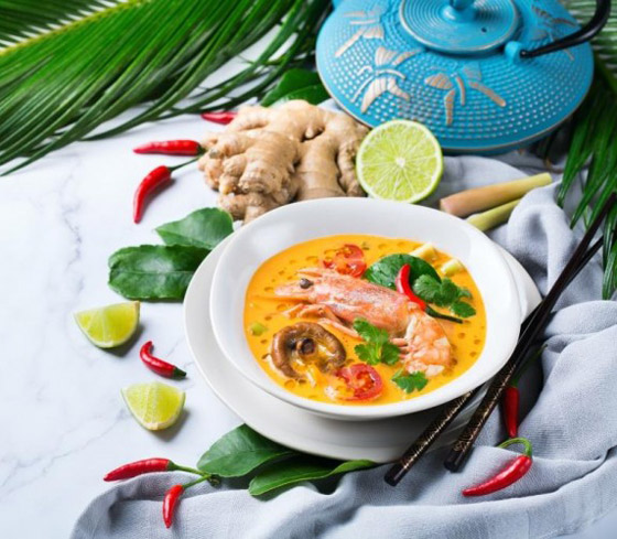 جمبري بالكاري وحليب جوز الهند... يحتوي حليب جوز الهند على كمية عالية من الألياف التي تساعد في الهضم عن طريق تعزيز حركات الأمعاء المنتظمة ومنع الإمساك، وأيضاً له خصائص مضادة للميكروبات يمكن أن تساعد في قتل البكتيريا الضارة في الأمعاء وتعزيز نمو البكتيريا المفيدة. يحضر الشيف السنغافوري هيكل جوهري طبق جمبري بالكاري وحليب جوز الهند، على طريقته. وقت الطهي: 60 دقيقة.. يكفي ل: 2 أشخاص.
