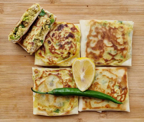 المطبق السعودي بالبيض... المُطبَّق هي أكلة شعبية حجازية وتتكون من العجينة الرقيقة بالحشوة المكونة غالباً من اللحم المفروم والبيض الكراث. وقت الطهي: 60 دقيقة.. يكفي ل: 4 أشخاص.