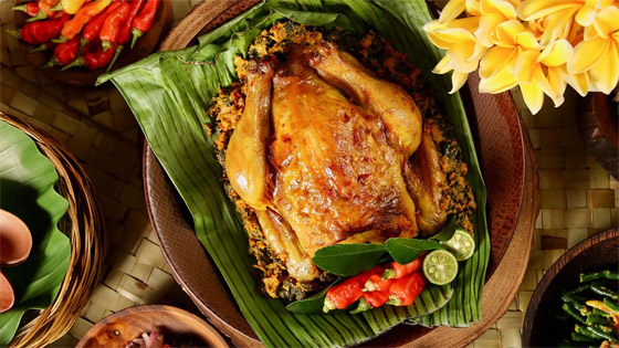 يحظى هذا الطبق الإندونيسي المصنوع من دجاجة كاملة بشعبيةٍ كبيرة في جزيرتي بالي ولومبوك على وجه الخصوص. وهو محشو بمعجون من التوابل العطرية الغنية يُدعى "بيتوتو"، والذي يتضمن عادةً مزيجًا من الفلفل الحار الطازج، ونبات الخولنجان الجذري المرتبط بالزنجبيل، والثوم، والكركم، ومعجون الروبيان، وغيرها من المكونات. ومن ثم يُلف الدجاج بأوراق الموز ويُطهى على البخار.