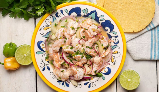 يُعد طبق الروبيان النيئ المتبل هذا من ولاية سينالوا غرب المكسيك وجبة أساسية على طول شبه جزيرة "باخا" أيضًا. ويكمن السحر بفلفل "شيلتبين" الصغير ولكن قوي النكهة، والذي ينمو في جميع أنحاء الولايات المتحدة والمكسيك. ويُغمس الروبيان مع مكونات تشمل عصير الليمون، والكزبرة، والبصل الأحمر، والخيار.