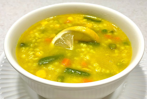 شوربة الشعير على الطريقة الأفغانية... يحتوي الشعير على المعادن الأساسية، مثل: السيلينيوم الذي يمنح الطاقة، والمغنيسيوم الذي يساعد على الشعور بالسعادة والحيوية، وتهدئة الجهاز العصبي. كما يساعد الشعير على إنقاص الوزن بسبب احتوائه على الألياف وبعض من أنواع الأحماض الأمينية، ويعد أيضاً منخفض السعرات الحرارية؛ ما يساعد على الشعور بالشبع لفترة طويلة. الشيف الأفغانية مارجون أنديشا، تقدم لنا وصفة شوربة الشعير على الطريقة الأفغانية. وقت الطهي: 60 دقيقة.. يكفي ل: 10 أشخاص.