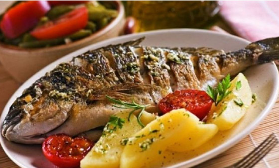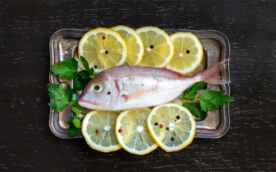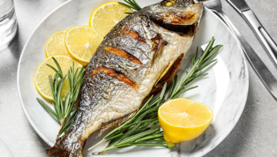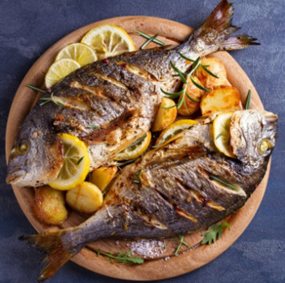 سمك الدنيس بالزيت والليمون و هو سمك يُعرف بغناه بالفيتامينات التي تساعد في تقوية جهاز المناعة كما يحتوي على البروتينات اللازمة لبناء عضلات الجسم ويقي من ارتفاع الضغط بالإضافة إلى أحماض أوميغا 3 الضرورية للجسم.