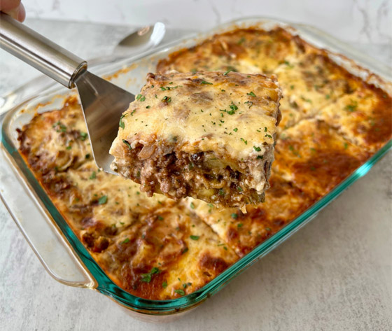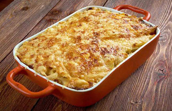 12. أدخلوا الطبق إلى الفرن من أسفل لحوالي 10 دقائق، حتى يتحمر الوجه ويذوب الجبن، ثم قدموا طبق البطاطس بالبشاميل واللحمة المفرومة ساخناً.