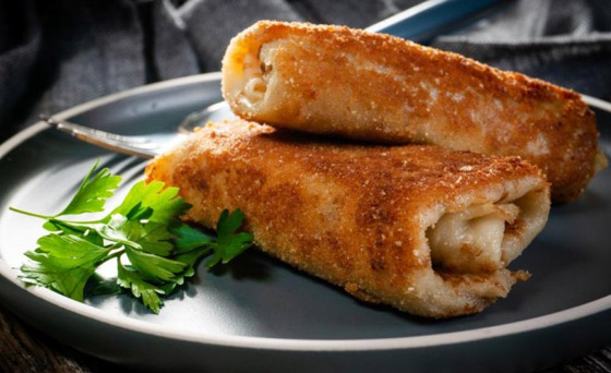 8. اقلوا الرولات في الزيت الساخن لمدة دقيقة حتى يتحمر وجهها، ثم ارفعوها من الزيت.