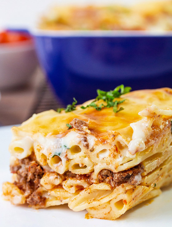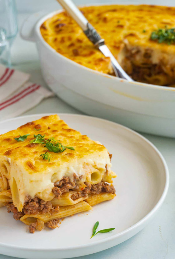 9. أخرجوا صينية المكرونة بالبشاميل من الفرن، واتركوها تبرد قليلاً، ثم قطعوها وقدموها.