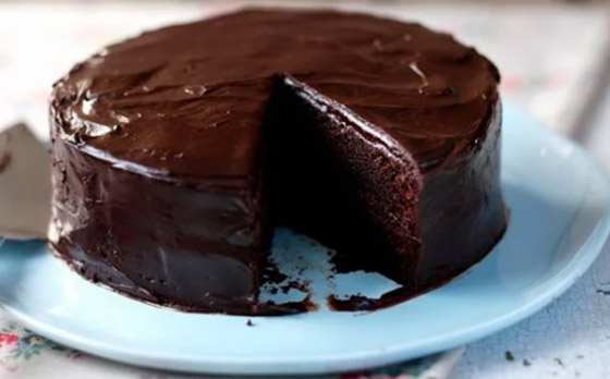 لصوص الكيكة، تذوب الشوكولاه مع الحليب على نار متوسطة، تضلف القشطة ويقلب، يزيين الكيك بالصوص.