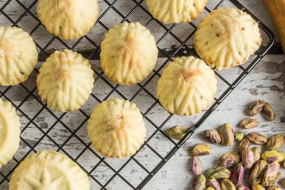 8. صفوا المعمول في صينية فرن مجهزة بورق الزبدة واخبزوه لمدة 20 دقيقة حتى يصبح لونه ذهبي.