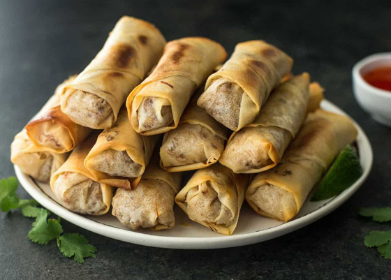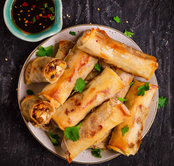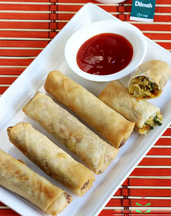 سبرينغ رول الخضار مشوي للرجيم... السبرينغ رول يُعدُّ من أشهر أطباق المقبلات الآسيويّة، ويُحضّر عن طريق عجينة رقيقة جاهزة تُباع في الأسواق وتُقدّم ساخنة، وتتنوّع الحشوات التي يُمكن استخدامها في حشو السبرينغ رول، إذ يُمكن تحضيرها بالدجاج أو اللحم، أو يُمكن تقديمها فقط بالخضار كما في هذه الوصفة الرائعة. وقت الطهي: 60 دقيقة.. يكفي ل: 5 أشخاص.